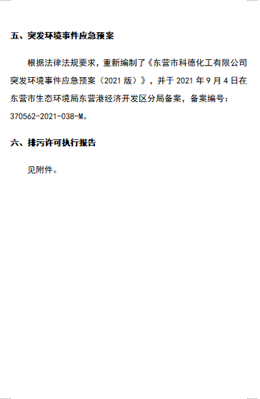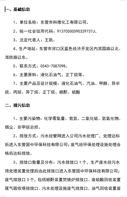 東營市科德化工有限公司2022年第三季度環(huán)保信息公開